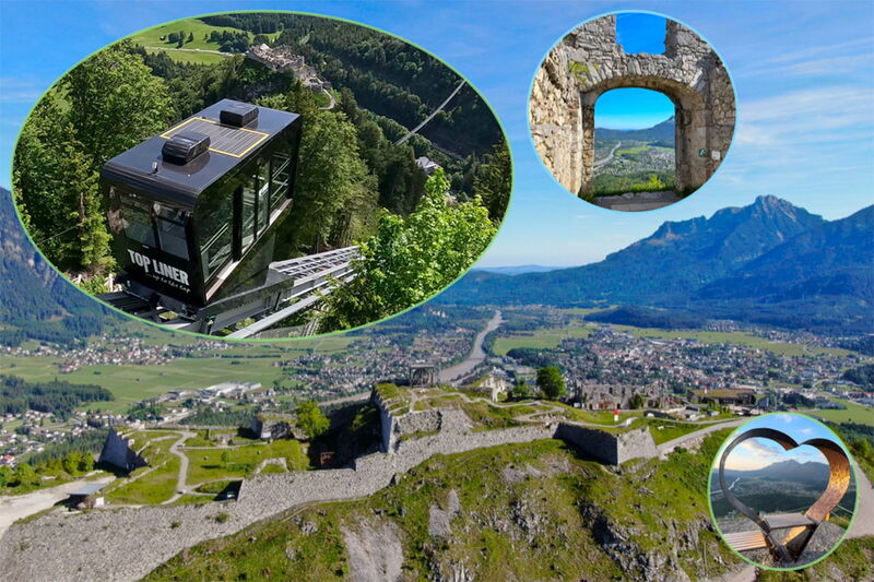 Sali in ascensore panoramico fino alla più grande fortezza Schlosskopf a 1.250 m – scopri il sentiero panoramico accessibile, goditi viste mozzafiato e scatta foto in punti iconici.
